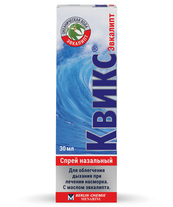 Квикс спрей назальний 30 мл – натуральний засіб на основі води Атлантичного океану, що зволожує слизову носа, полегшує закладеність і відновлює нормальне дихання. Підходить для дорослих, дітей від 3 місяців, вагітних і годуючих жінок.