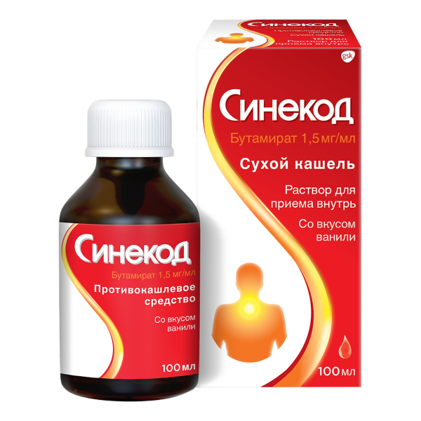 Синекод розчин для прийому всередину застосовується для полегшення сухого кашлю різного походження у дорослих і дітей від 3 років. Активна речовина – бутамірат цитрат, що безпечно пригнічує кашльовий рефлекс, не викликаючи залежності.