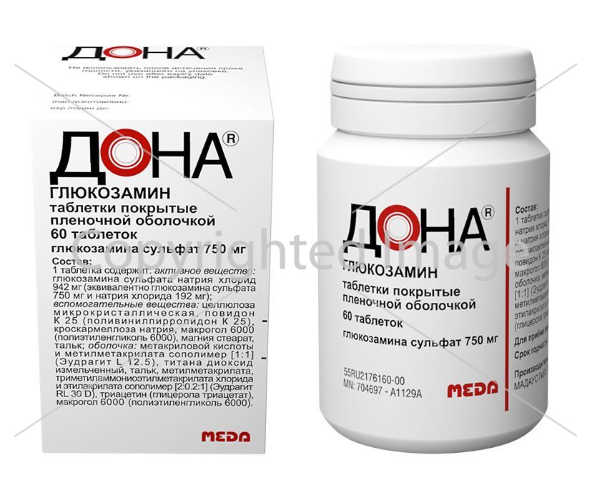 Дона, таблетки покрыт.плен.об. 750 мг 60 шт является препаратом, применяемым для лечения остеоартроза, артрита, остеохондроза, боли в суставах и артроза.