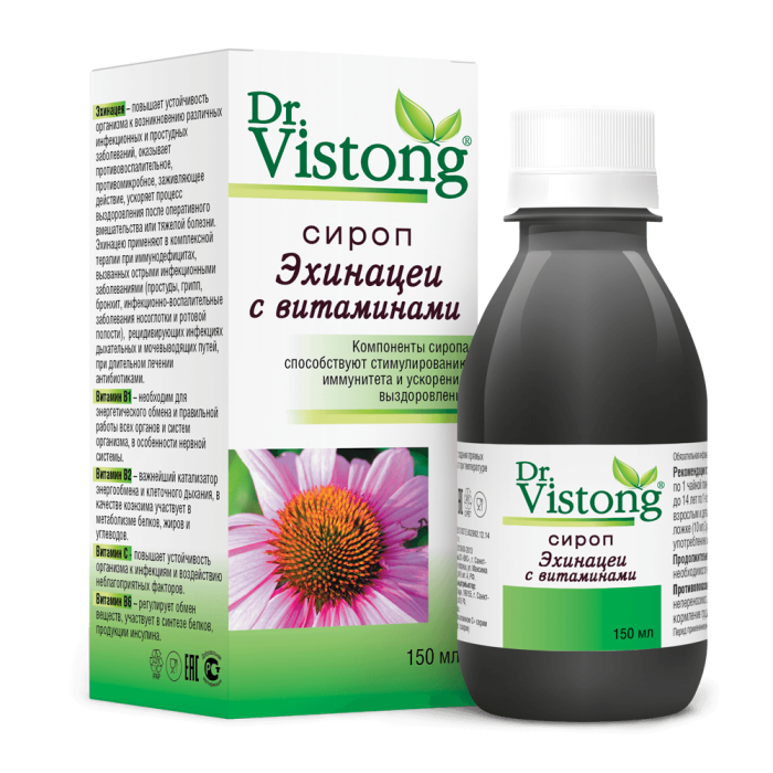 Пользуюсь сиропом DrVistong с эхинацеей уже месяц. Заметила, что реже стала простывать, иммунитет реально укрепился. Витамины дополнительно дают заряд энергии.