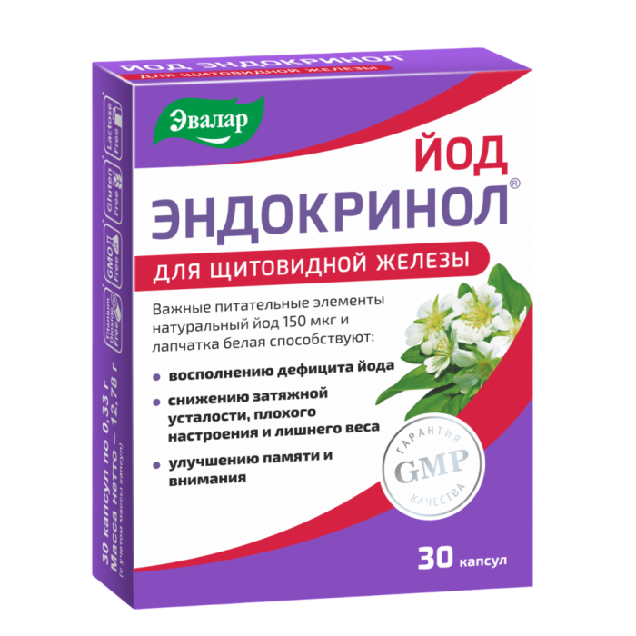 Принимала Йод Эндокринол курсом, чтобы поддержать щитовидную железу и восполнить дефицит йода. Отметила улучшение общего самочувствия и повышение энергии. Капсулы удобные в приеме, не вызывают дискомфорта.